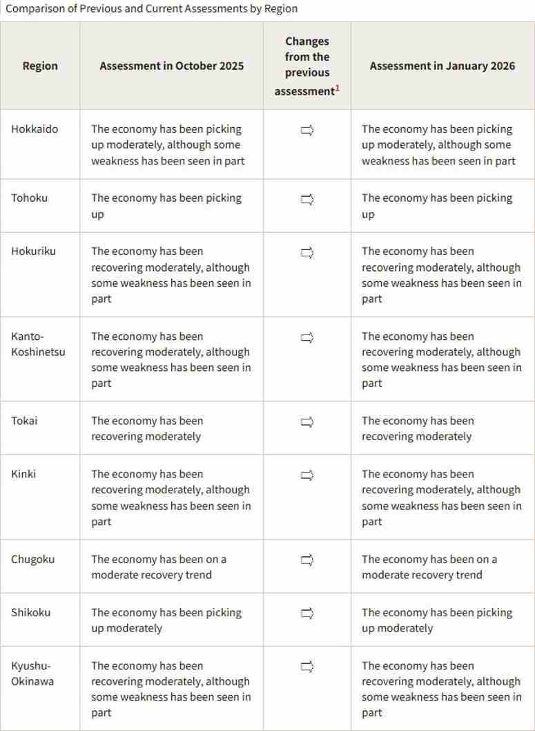 🔹این گزارش نادری است که در آن بانک مرکزی ژاپن هیچ تغییری در ارزیابی اقتصادی خود از 9 منطقه ژاپن که تحت پوشش قرار گرفتهاند، ایجاد نمیکند.