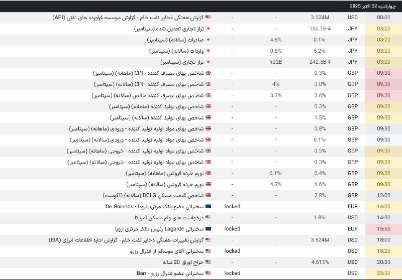 🔸اداره آمار کار، گزارش شاخص قیمت مصرفکننده (CPI) ایالات متحده را روز جمعه، علیرغم تعطیلی دولت، منتشر خواهد کرد، بنابراین این یک رویداد ریسکی کلیدی خواهد بود.
