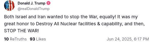 🔹افتخار بزرگی بود که تمام تأسیسات و قابلیتهای هستهای را نابود کردم و سپس جنگ را متوقف کردم!