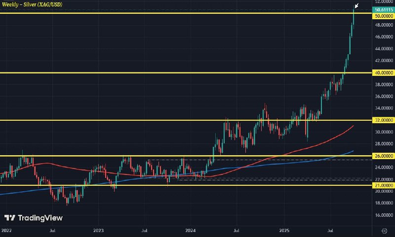 🔸اما برای نقره، شاهد افزایش قیمت بیش از 3 درصدی هستیم، زیرا به دنبال عبور از مرز 50 دلار هستیم.