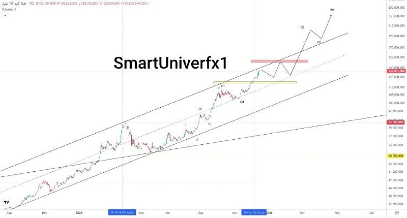 (7 روز پیش)🔹قیمت داره به سقف کانال مقاومتی میرسه و با اصلاح موقت به ناحیه که عدد 11900(یازده میلیون و نهصد در هر گرم) است میتونه قیمت رو مجاب کنه به سمت 115000 حرکت کنه. چارت کاملا شفاف و گویای مسیر است.